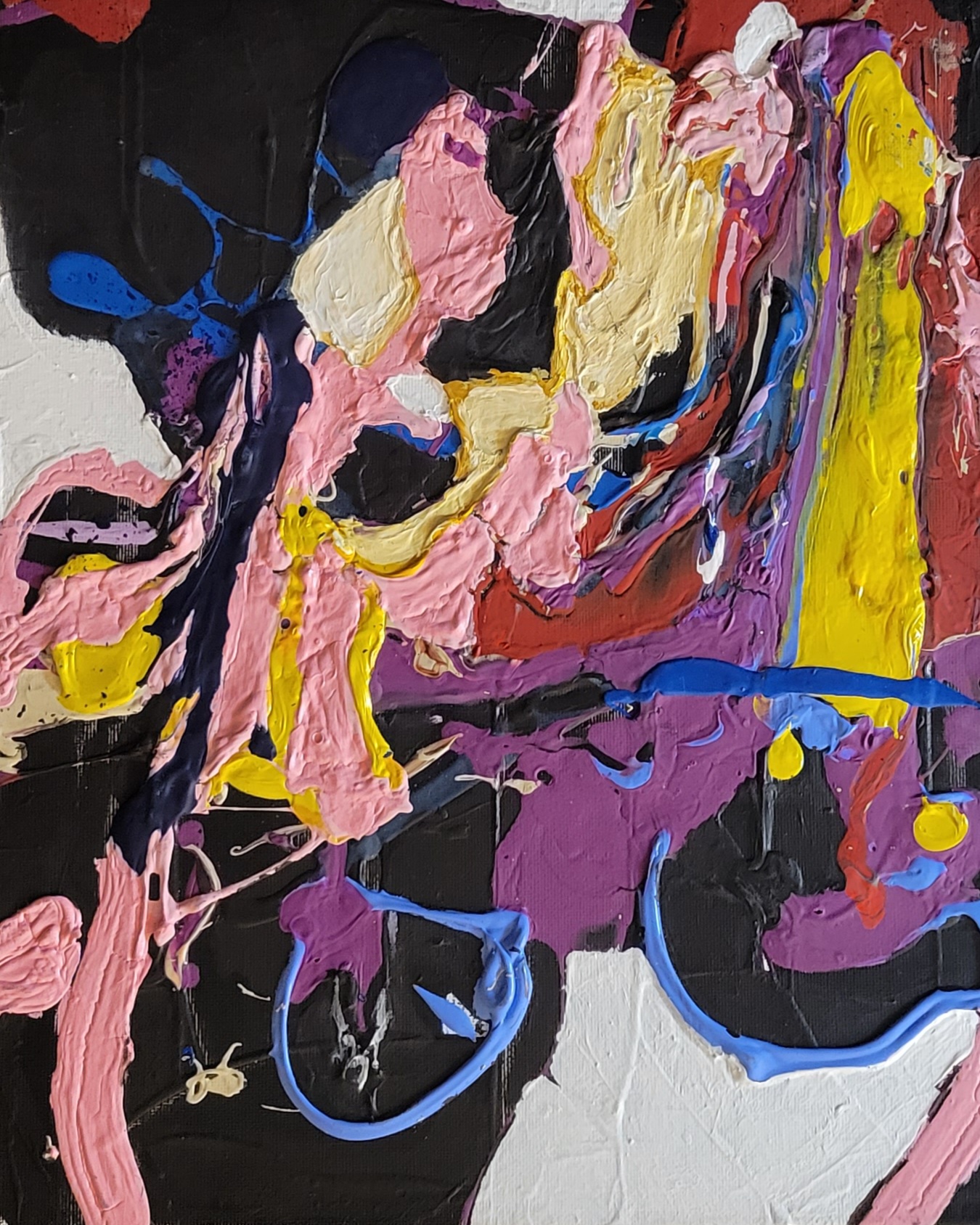 A significant influence of my painting practice comes from my desire, when I was a child, to share my artwork with my “Baba,” great grandmother. She was blind. Using Textures and mediums of all kinds allowed me to do this.